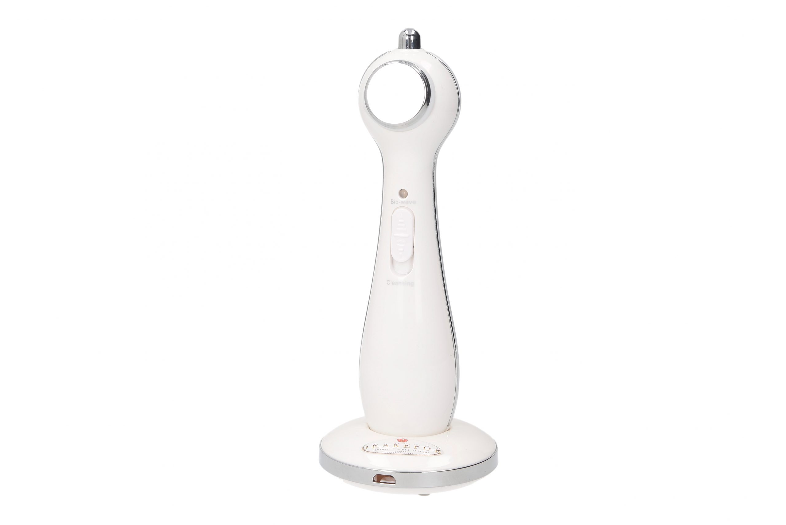 Dispositivo antiarrugas con tecnología iónica la cual puede penetrar hasta la base de la piel y eliminar las impurezas de los poros. Aumentar el flujo sanguíneo y la absorción de los principios activos de sus mejores cremas y tónicos a través de la epidermis y lograr que los nutrientes alcancen la parte más profunda de la piel para mantenerla limpia, hidratada, alimentada y sana. Genera una electricidad de carácter iónico que se aplica a la zona periorbital y cara, reduce sensiblemente las patas de gallo, alisa las líneas de expresión y las ojeras, refuerza la estructura de la piel con un fuerte efecto hidratante y nutritivo que previene la aparición de arrugas.